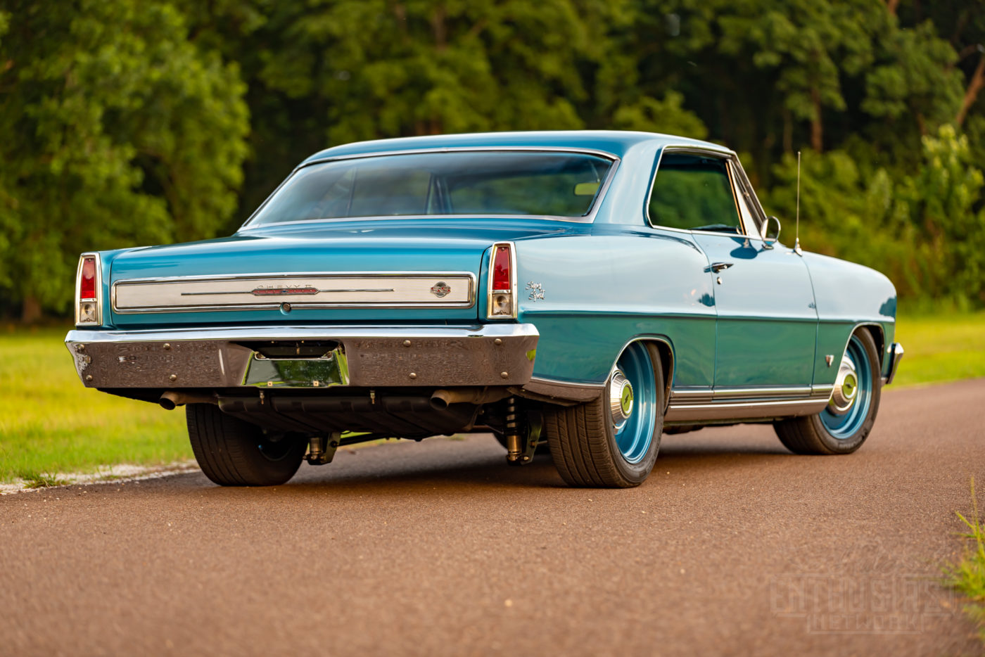The Nova was sent to the hot-rodding geniuses at Johnson’s Hot Rod Shop in Gadsden, Alabama, to work their magic. With the car receiving a partial restoration in the not-so-distant past, Alan Johnson and his team didn’t have to worry about the body, paint, or interior. Instead, they were able to concentrate on power, performance, and drivability.
